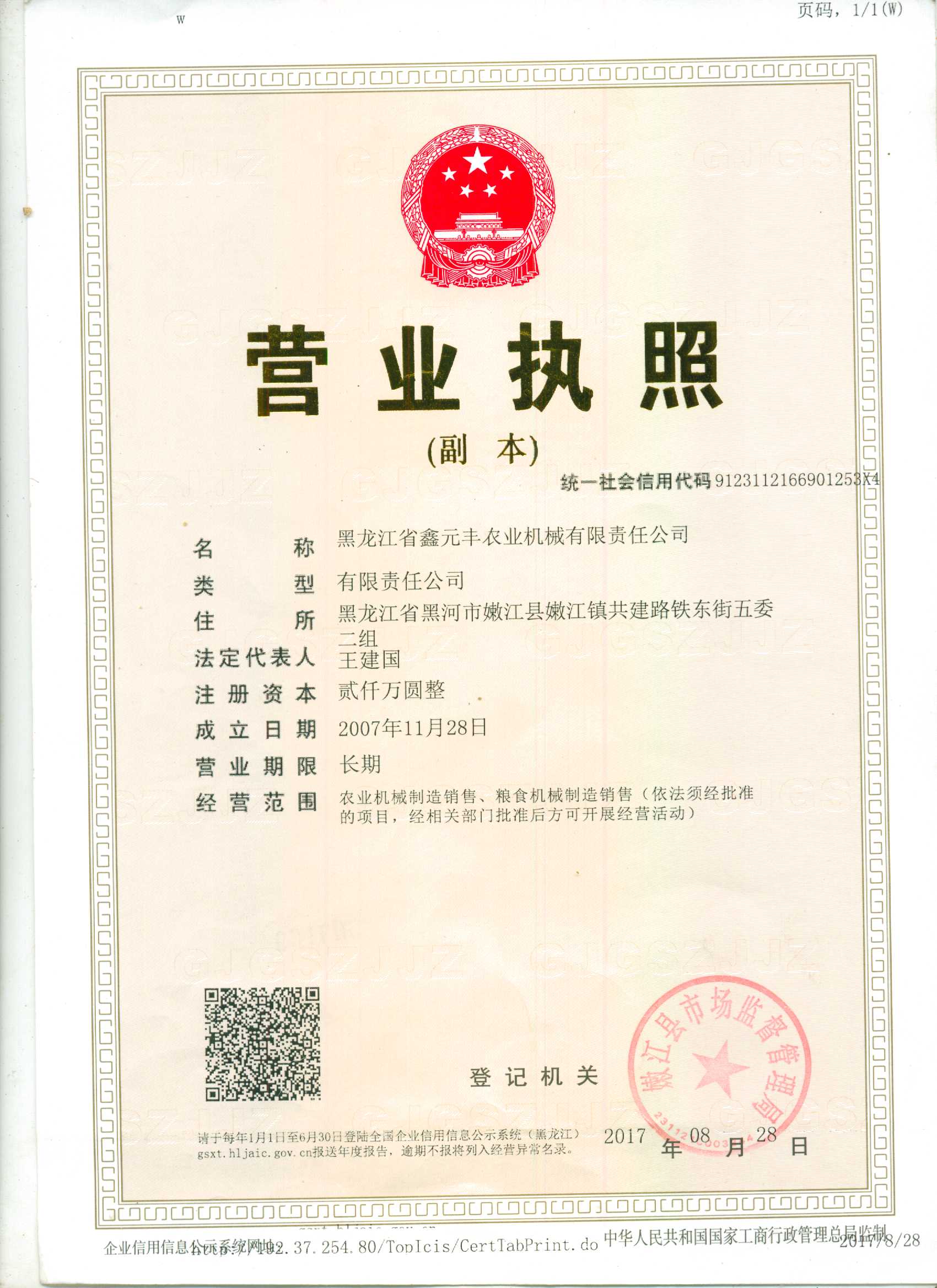黑龍江省鑫元豐農(nóng)業(yè)機(jī)械有限責(zé)任公司