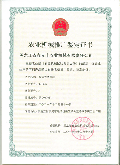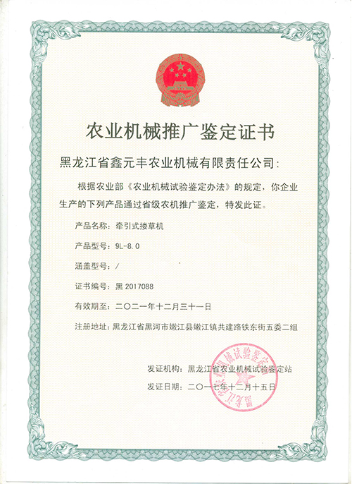 資質(zhì)榮譽(yù) 營(yíng)業(yè)執(zhí)照 9L-8.0牽引式摟草機(jī)推廣證書 9L-5.5背負(fù)式摟草機(jī)推廣證書 1YZ-12.5液壓折疊鎮(zhèn)壓器 1LF-535深松淺翻翻轉(zhuǎn)犁推廣證書 1JH-350秸稈粉碎還田機(jī)推廣證書 共9條記錄 當(dāng)前為第2頁/共9頁上一頁12下一頁